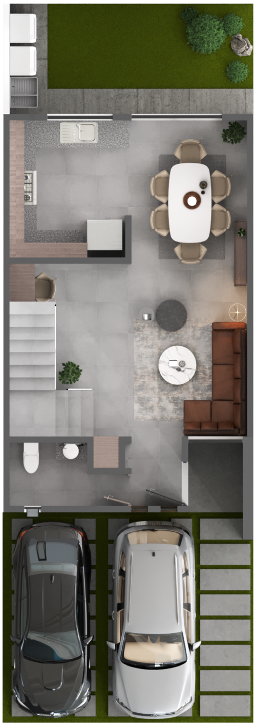 Tu espacio perfecto de tres recámaras te espera. Este hogar ha sido diseñado para tu comodidad, con una amplia sala, cocina equipada con cubierta de granito, comedor y área de lavado. Las recámaras cuentan con closets para una mejor organización. Disfruta de un acogedor jardín interior y la conveniencia de dos cajones de estacionamiento, además de dos baños completos y un medio baño.